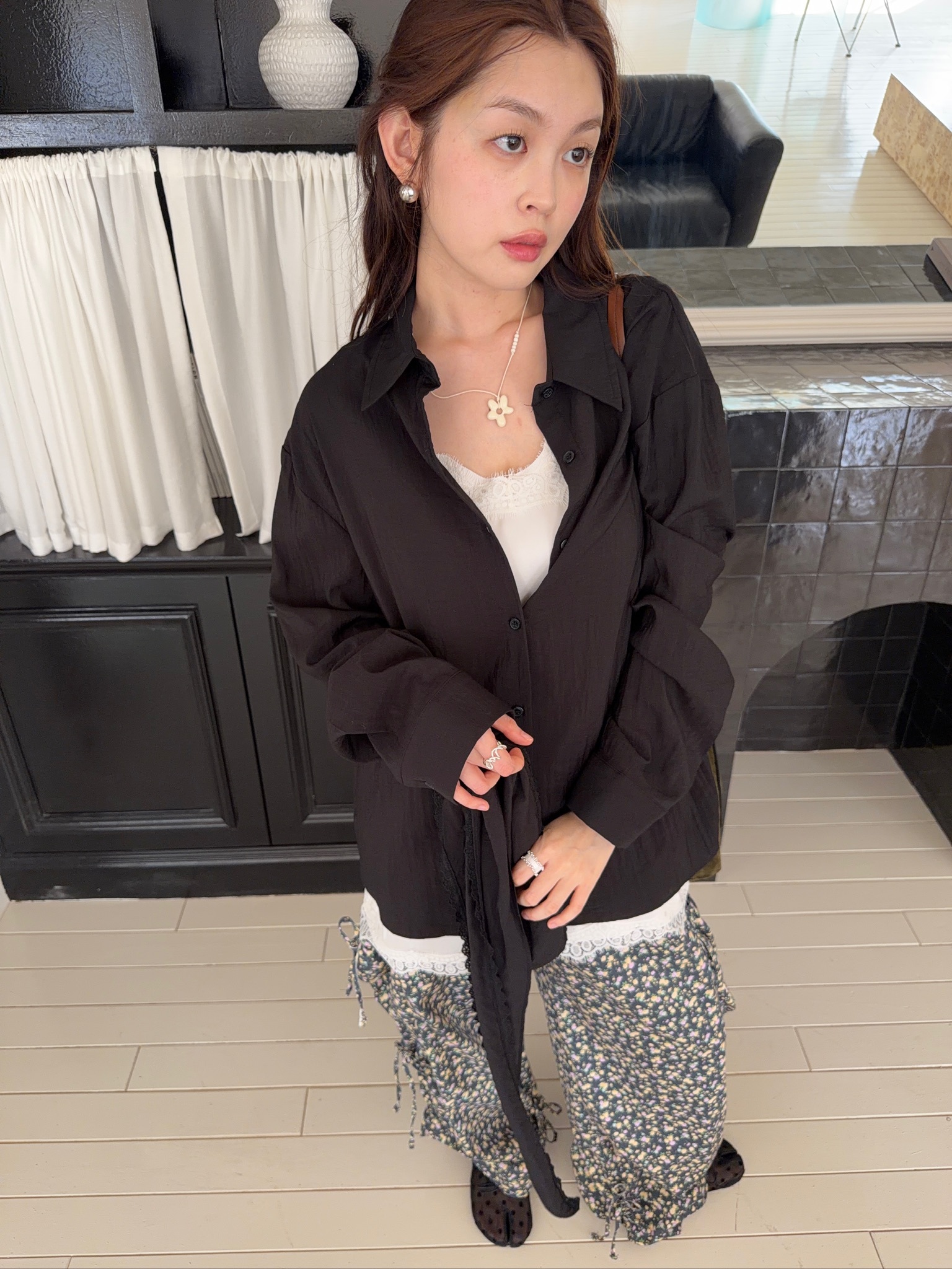 全部商品 / A08//銀河系星群親膚軟料襯衫+絲巾SET