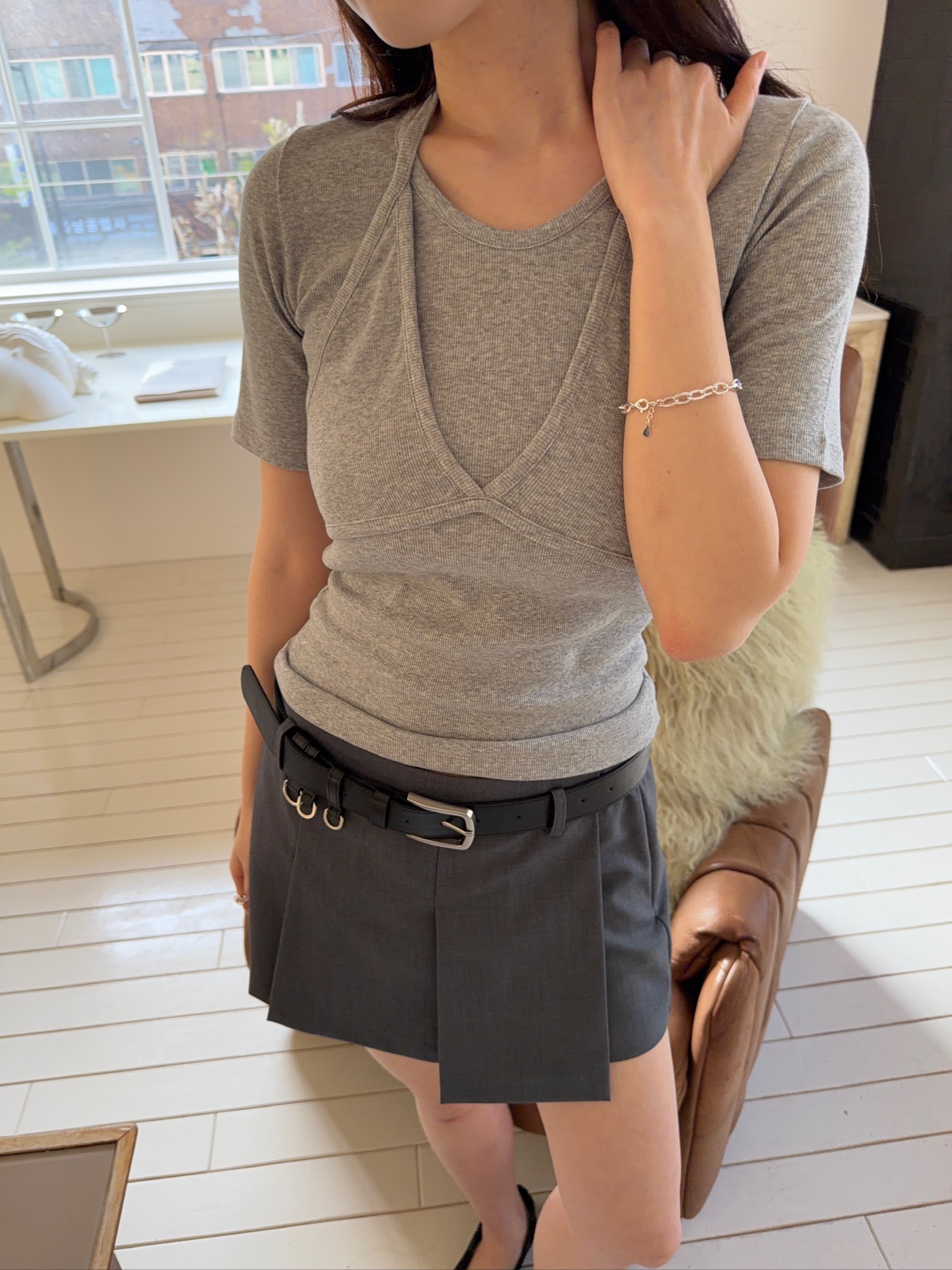 A30//I want u 打褶西裝短褲裙