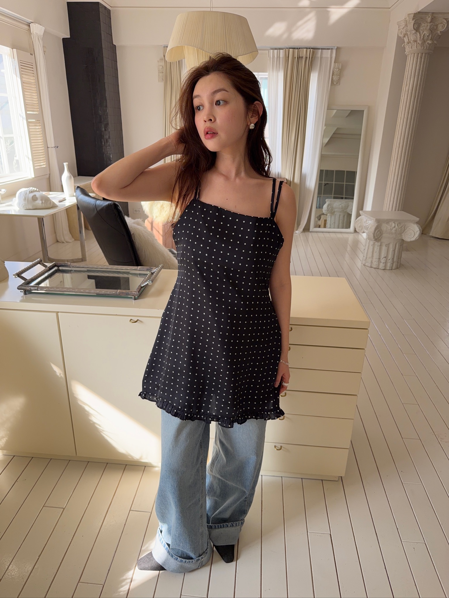 A37//凡爾賽宮內碎花點點細肩洋裝