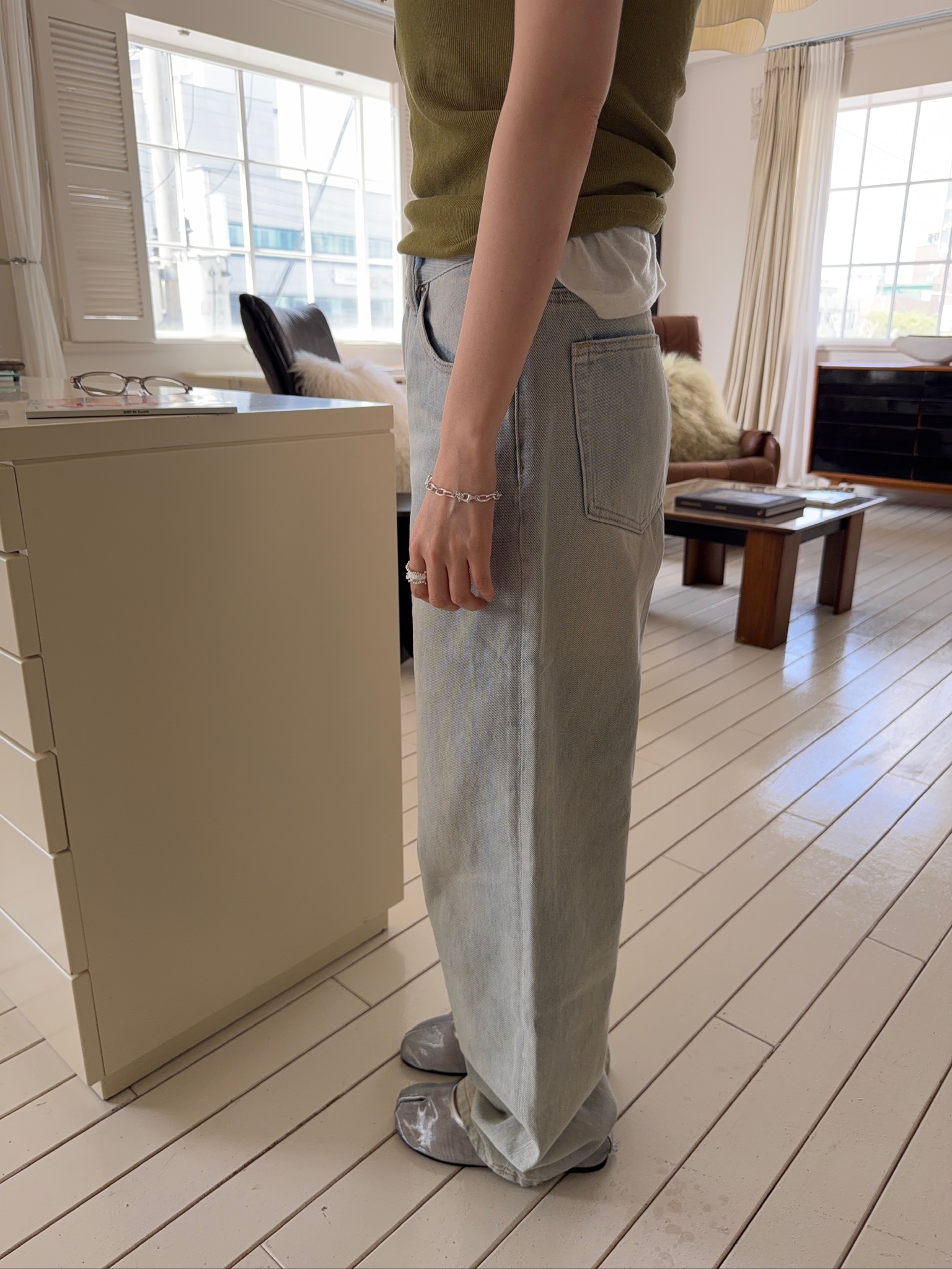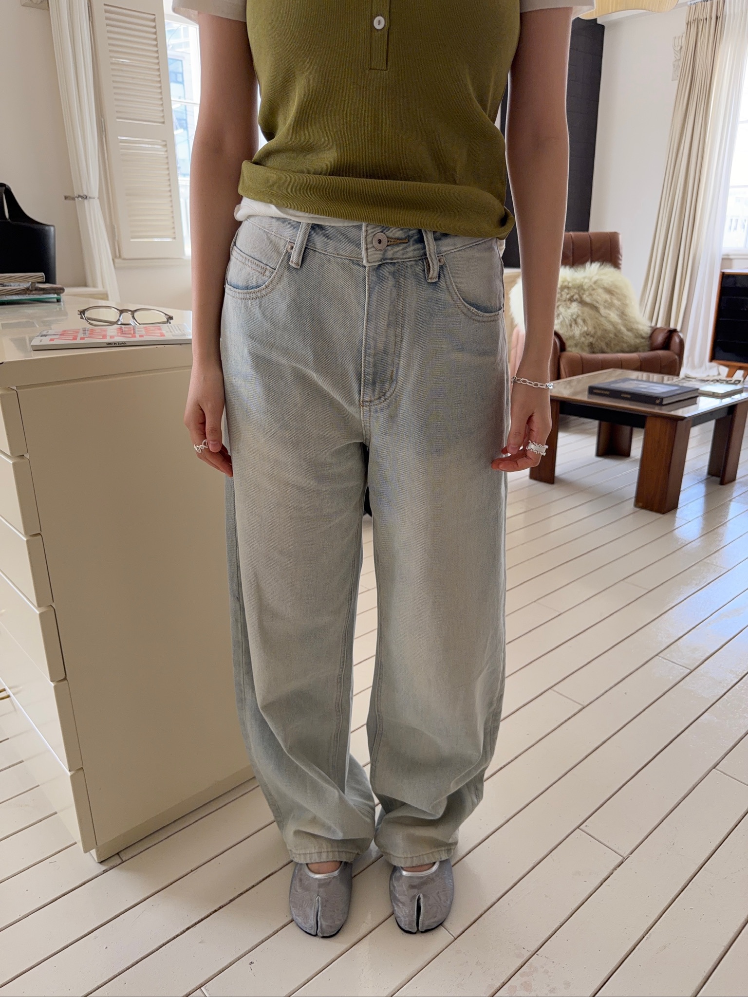 A56//淺洗色直筒牛仔褲