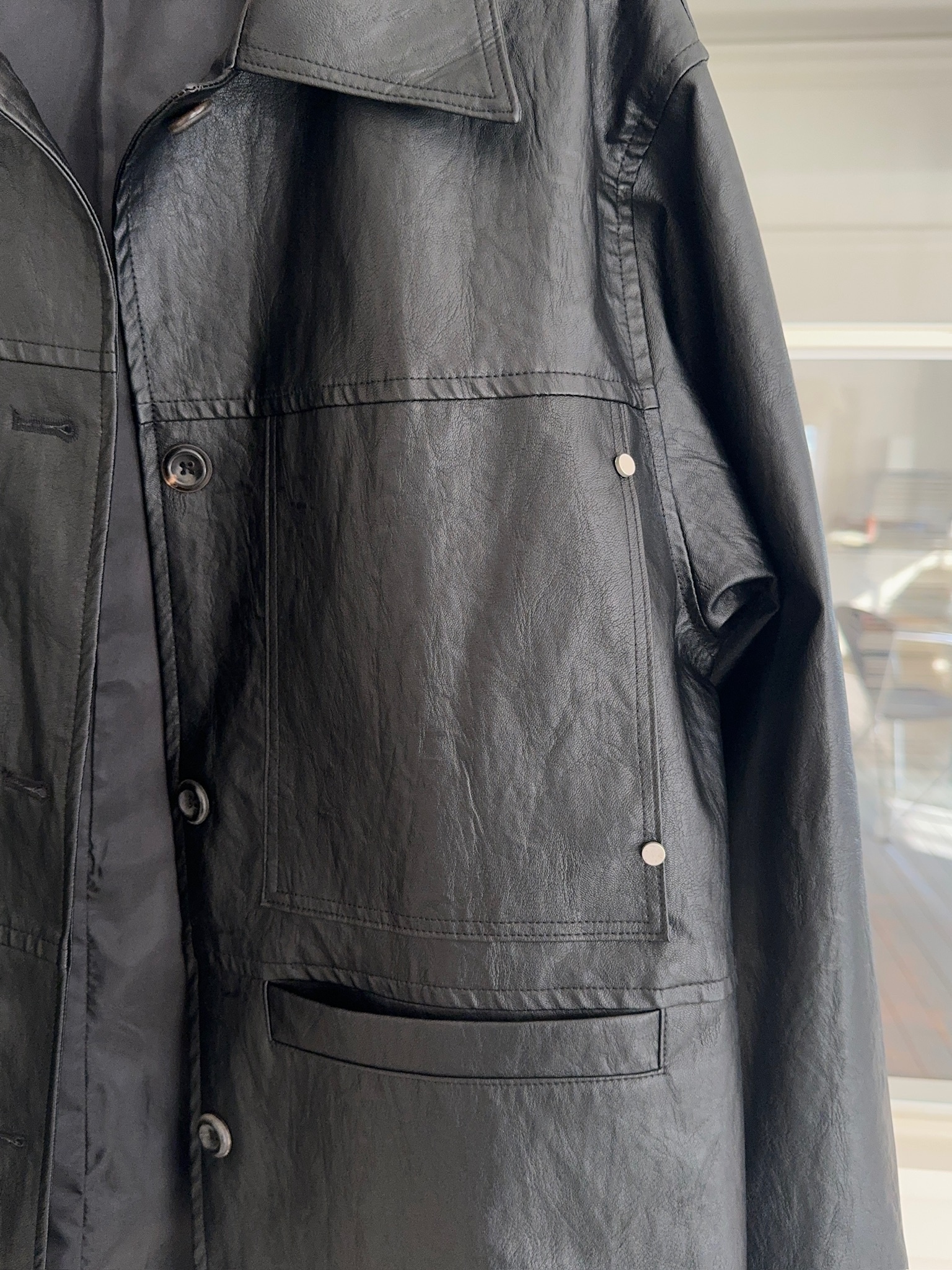 A61/俐落設計長版皮外套
