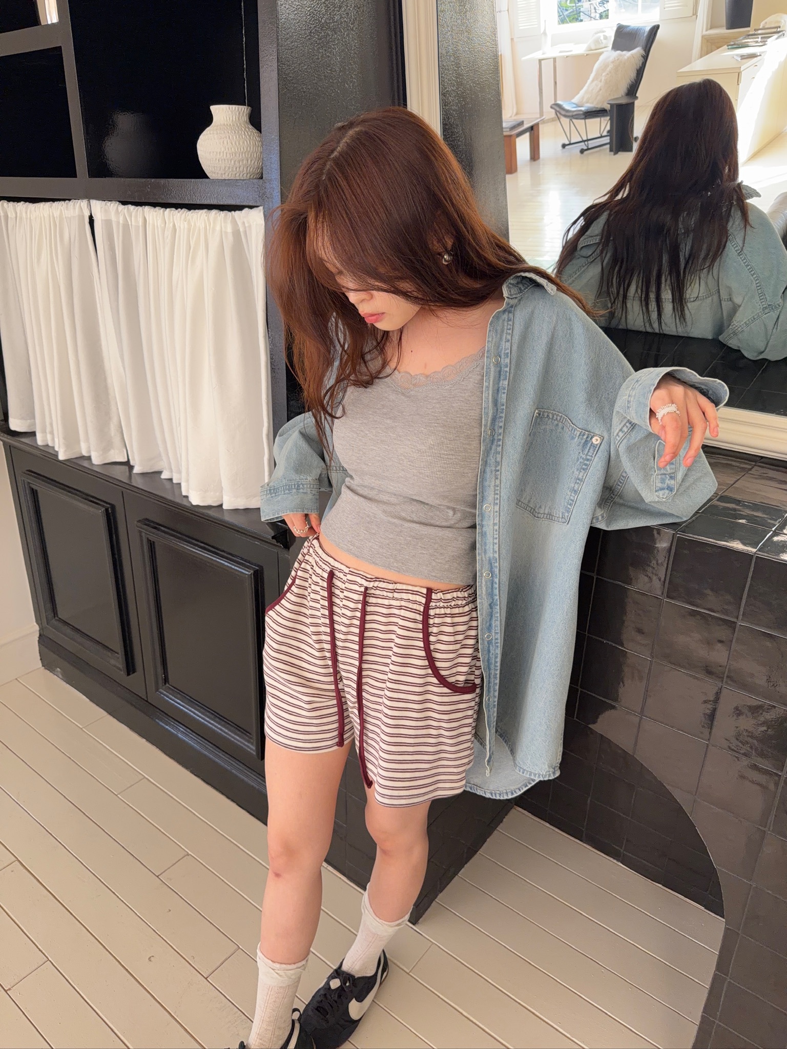 A65//條紋滾邊撞色短褲