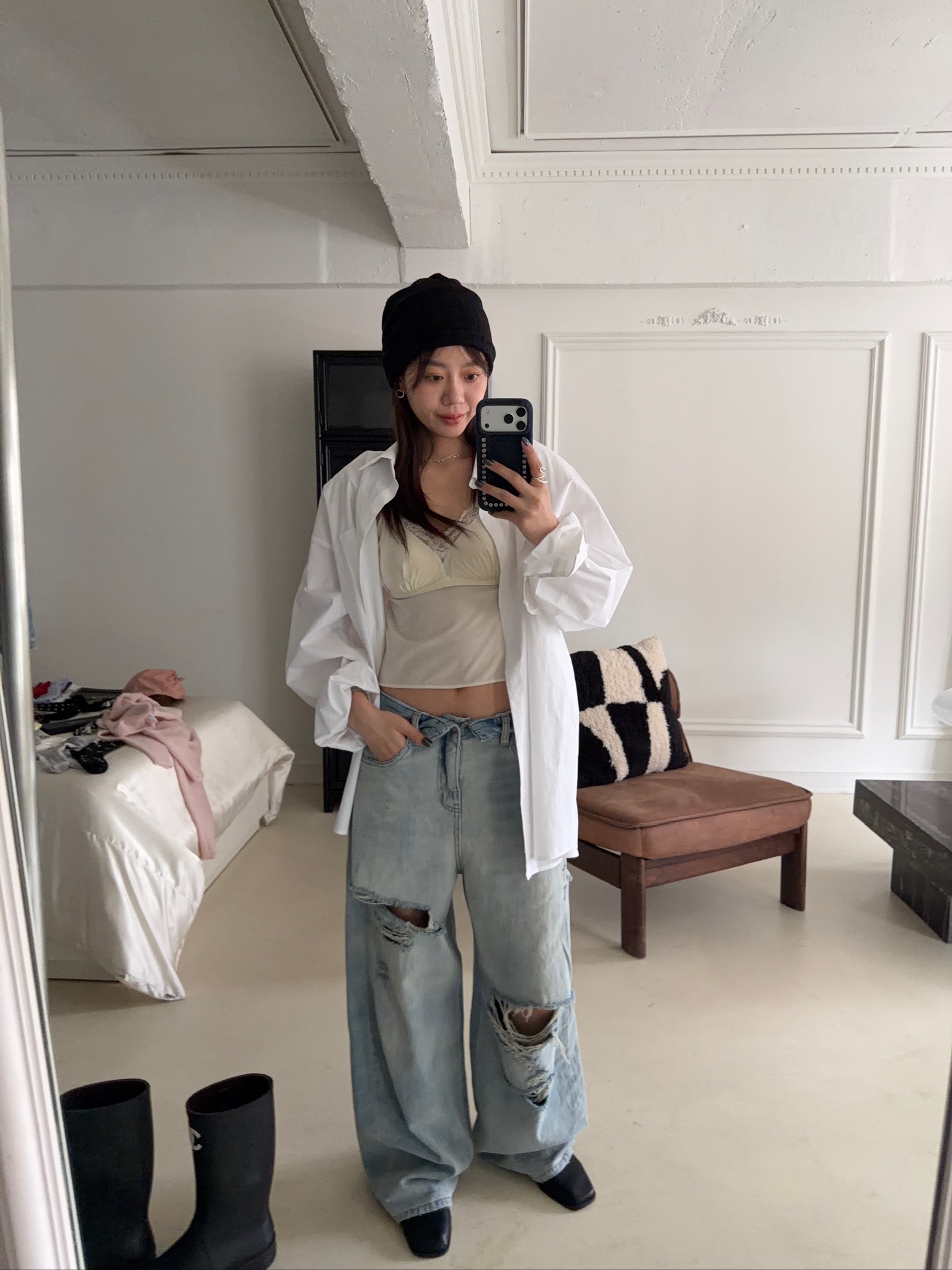 M12/ 微性感褲頭設計刷破牛仔褲