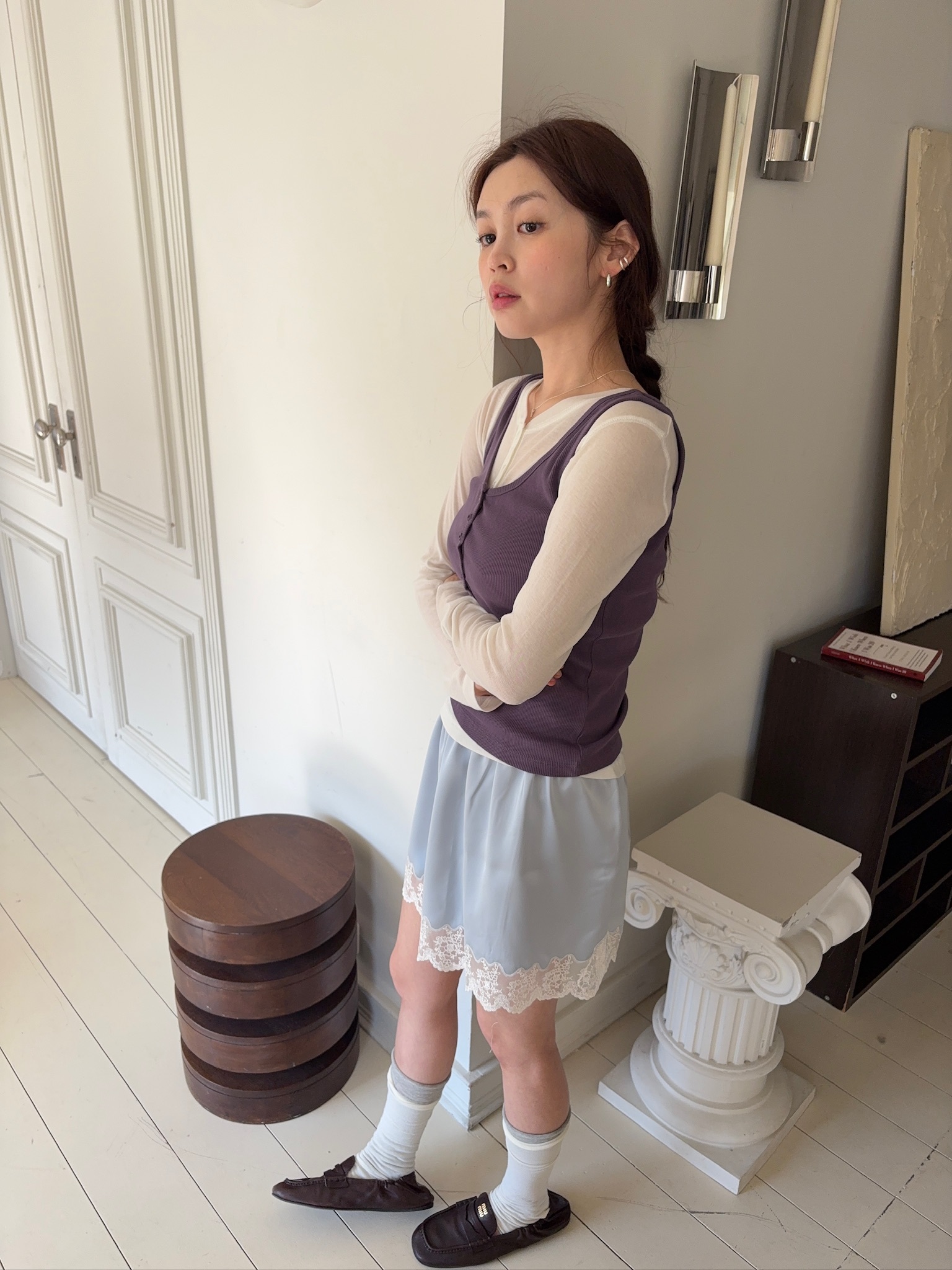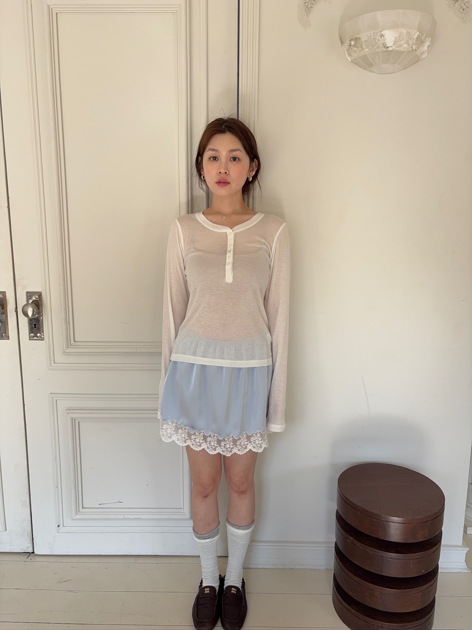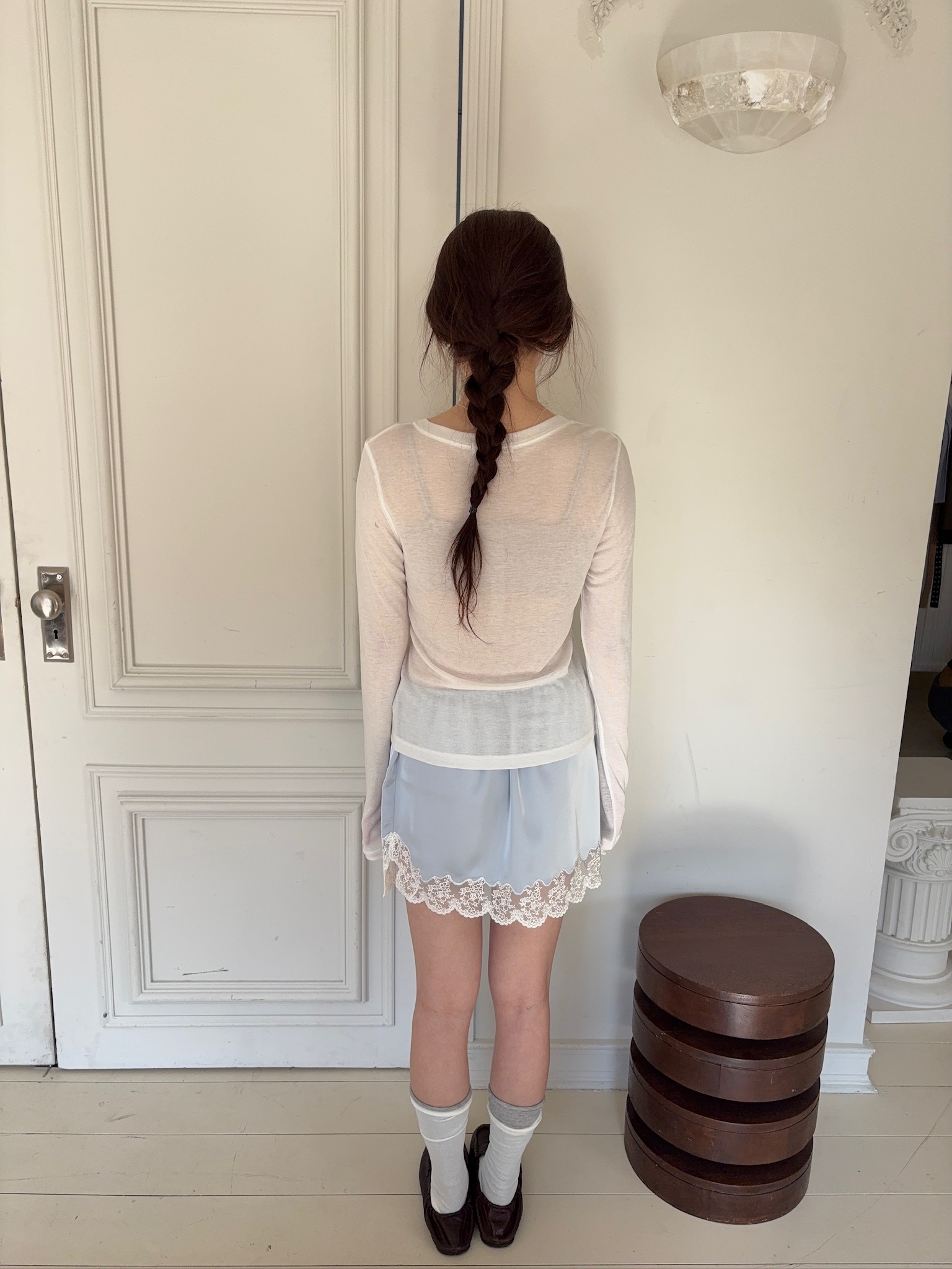 M59/ 睡前細膩光影蕾絲拼接短裙