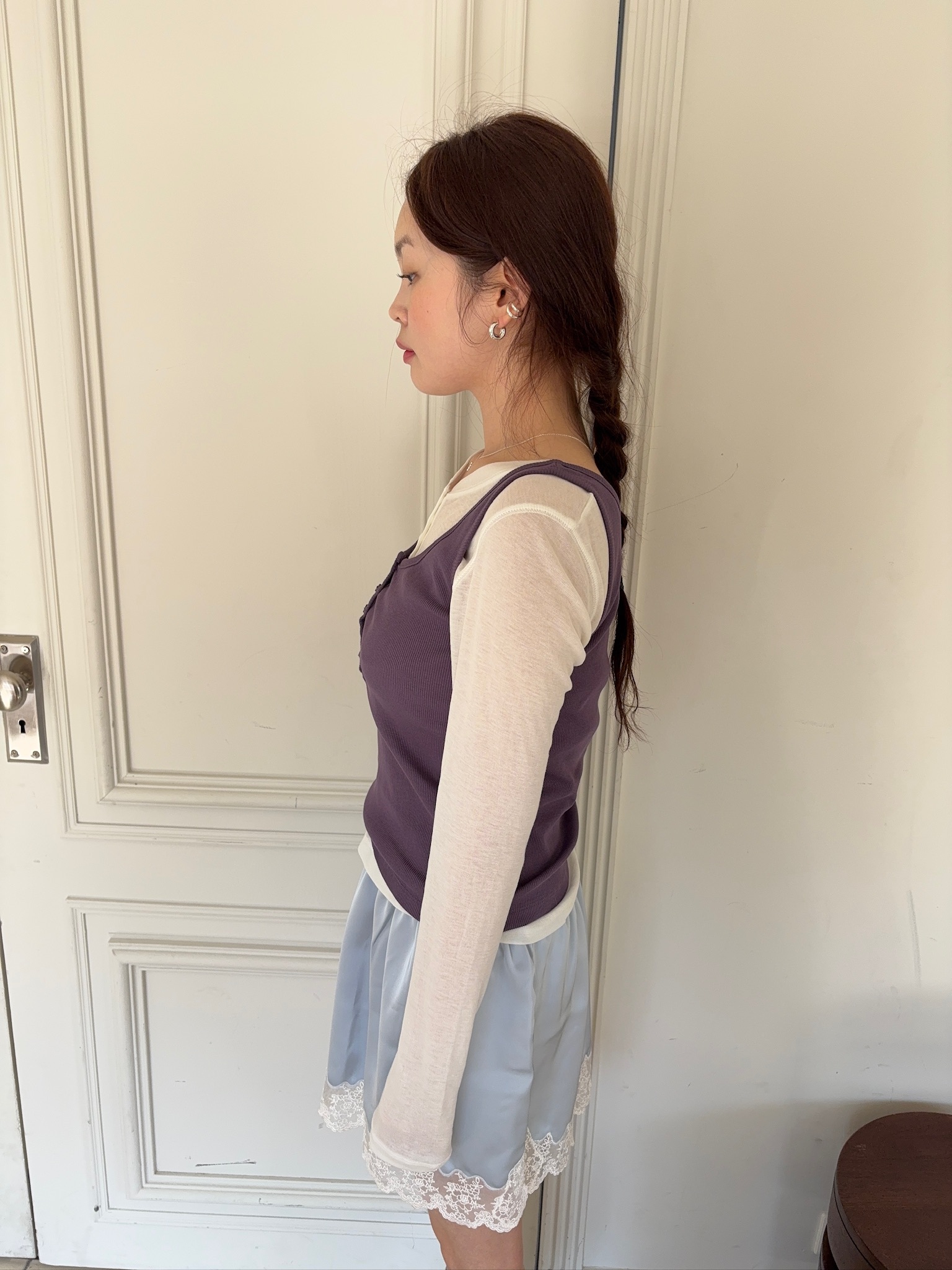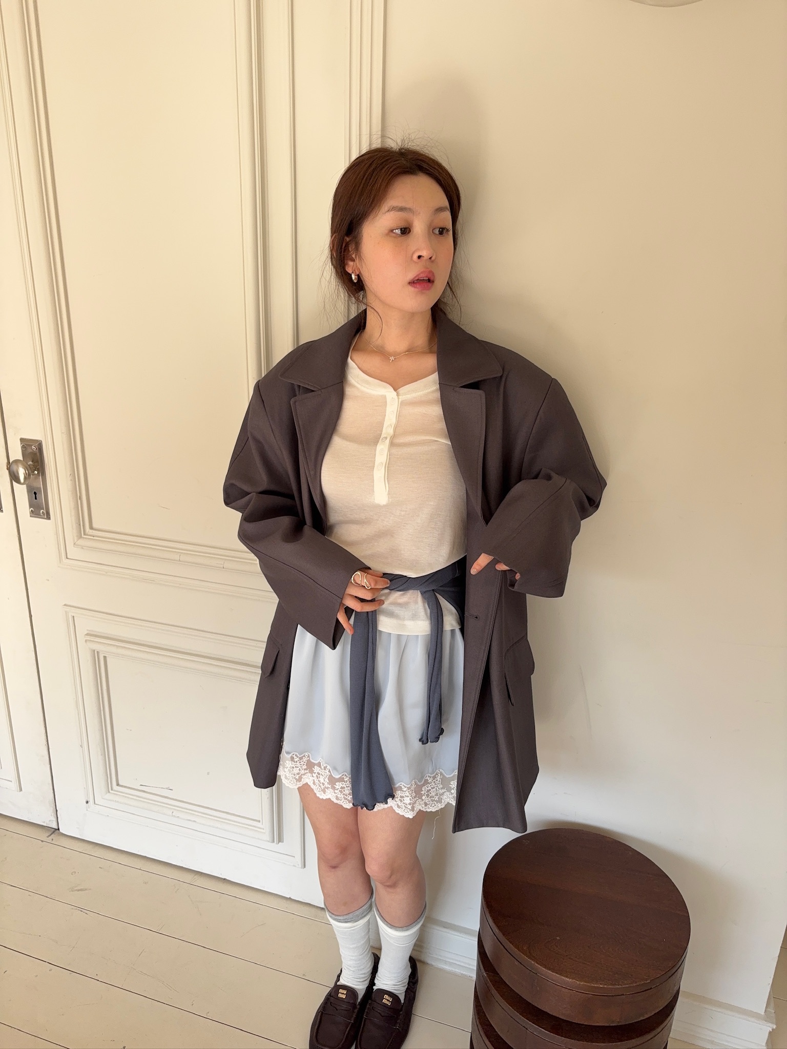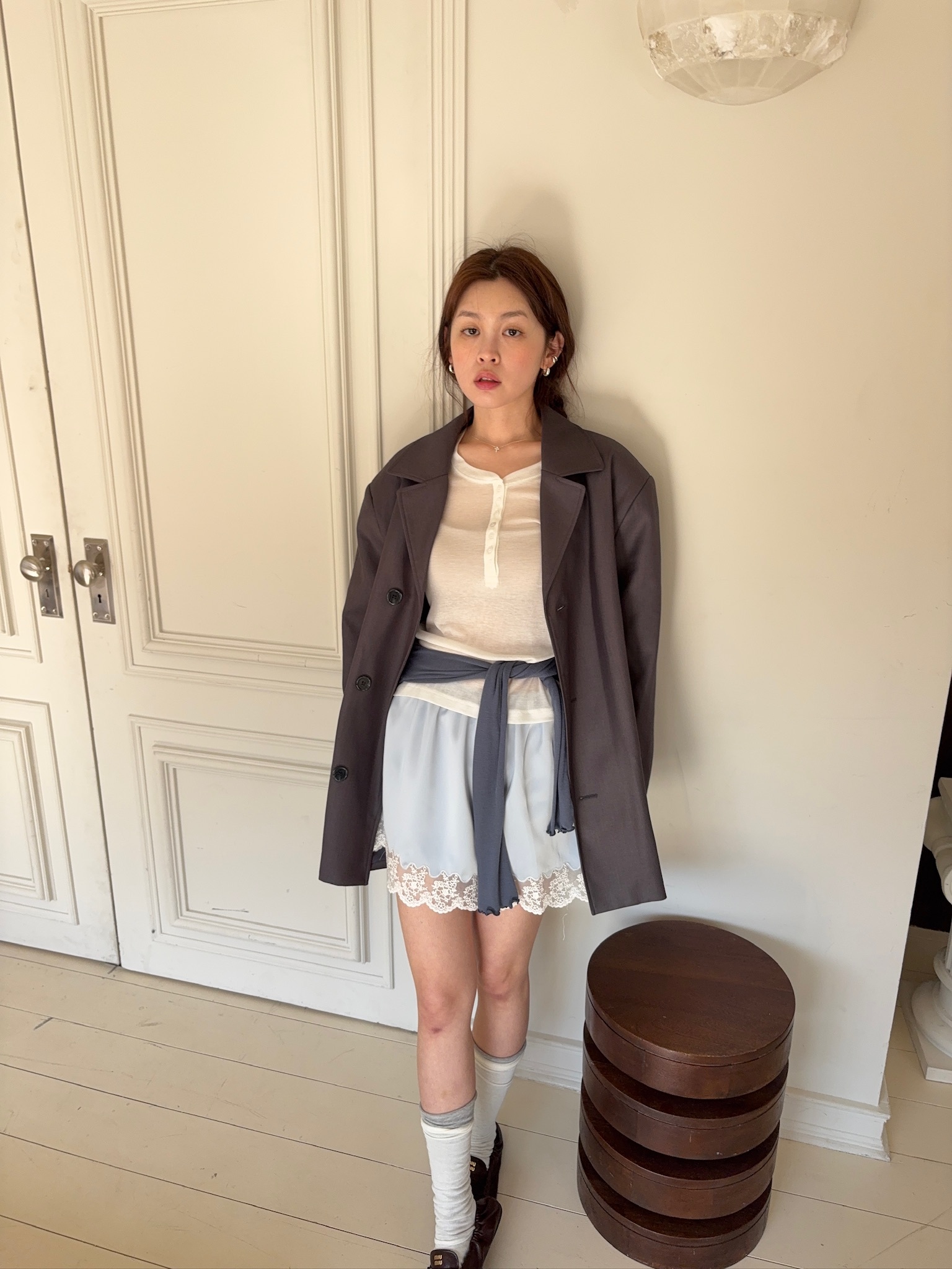 M59/ 睡前細膩光影蕾絲拼接短裙